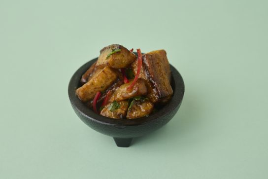 We only have five main dishes and they’re all my signatures. I’ve got a dark rum and raisin glazed pork belly which I’m super excited about; I’ve taken my classical training and inputted my family heritage and tradition into it. I’ve also got jerk kitchen with my own plantain jam. I’ve got some crispy spiced banana blossom with gungo pea daal for vegans—I really want vegans to feel considered, like this is a place for them to dine; I’ve got escovitch fish; and curry goat.