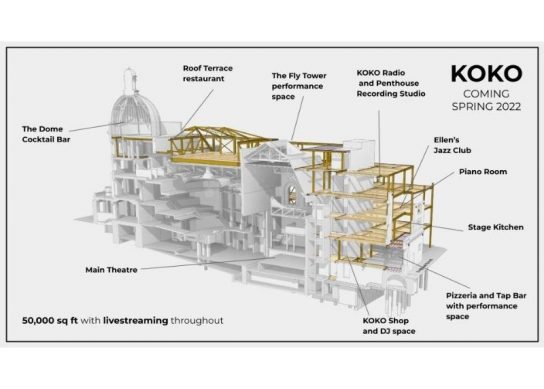 Across four new floors above will be House of KOKO, a new members’ space that brings access to secret shows, a roof terrace restaurant, cocktail bar, penthouse and recording studio, piano room, library, hidden speakeasy, stage kitchen, cocktail bar, and vinyl rooms.