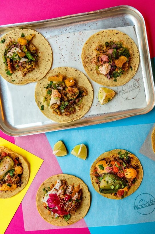 The food offering is inspired by the street side taquerias of Los Angeles and Mexico City, serving a selection of tacos and small plates designed to share. The menu will feature dishes such as the beer battered tofish taco and the cheezeburger taco loaded with ‘beef’ burger, red pepper queso, dill pickle and annatto mayo. There will also be nachos and tostadas on offer, as well as queso flameado, a Mexican fondue of vegan cheese topped with a spicy chorizo substitute. Diners can also enjoy Club Mexicana’s classic burritos, including the MFC, a Mexican fried chick’n burrito.