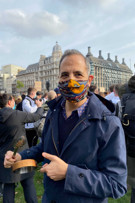 Estimates on numbers attending the HospoDemo yesterday vary, but there’s no doubting how passionate the attendees felt about hospitality’s dire situation. Jason Atherton and Yotam Ottolenghi both arrived early and stayed for hours, banging the drum – literally with wooden spoons and metaphorically by talking to reporters – to raise awareness on the damage being brought to businesses by Tier 2 and the curfew combined. Meanwhile a huge variety of people, from Fergus and Margot Henderson to Sally Abé to Ravinder Bhogal to Nicholas Balfe and very many others shook cocktail shakers, banged saucepans, dinged service bells, scraped graters and more for an uninterrupted cacophony aimed towards the Houses of Parliament. I can report that a former colleague who works in the building told me later that the sound could be heard loud and clear inside…