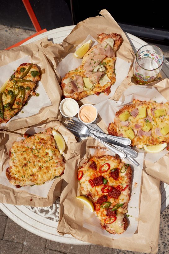 That said, Max and his business partner Ethan – who grew up above a pub out west – both have a ‘mutual appreciation of fried meat cutlets’, and have decided to combine their boozers with the the concept. A parmo, a Middlesbrough staple, is a drinking dish in every sense of the word – flattened and breaded meat, usually pork, is fried and covered in a silky bechamel sauce and cheddar.
