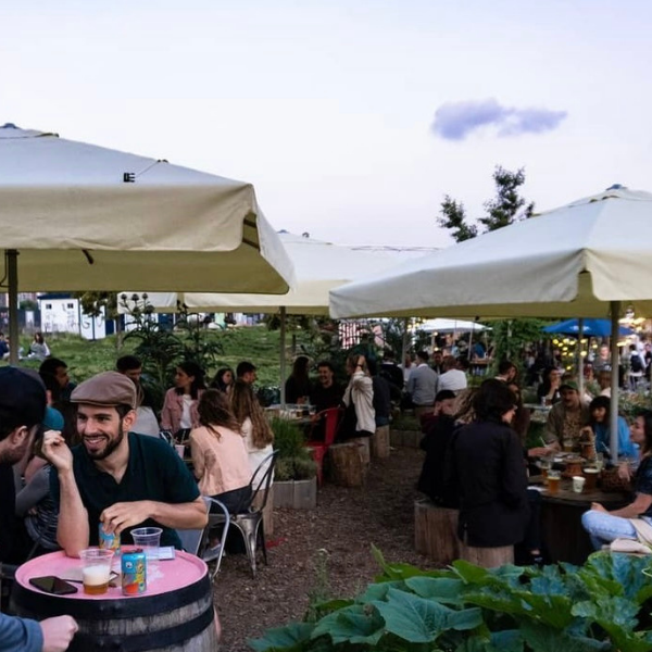 Some of the excess funds raised were used to build a huge kitchen garden across the towpath from the barge, with around 40 varieties of fruit, vegetables and herbs, planted and maintained by their chefs. One of the crops growing is hops and the team are working with Truman’s brewery to develop their own beer. The garden also hosts one of the largest outdoor hospitality spaces in east London.