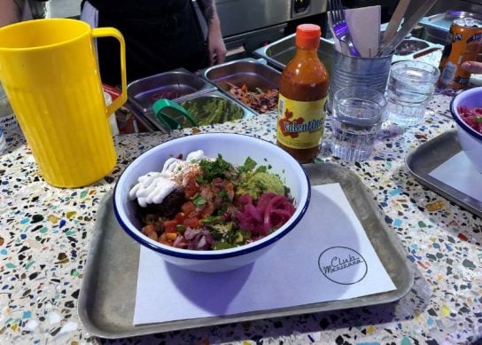 Club Mexicana in Kingly Court is the ideal spot for a quick filling lunch break. It’s 50 per cent off food at lunch time on Sunday-Friday on the CODE app. Service is super friendly and the tunes give me that little wake up needed to get me through darkening afternoons. I had the BBQ ‘short rib’ bowl, with sticky glazed jackfruit ‘ribs’, hickory smoked BBQ sauce, pico de gallo, pink onions, pickled cabbage, pickled jalapeños, rice, lettuce, garlic mayo, and salsa verde. I also added beans and guacamole. The jackfruit is sweet and tangy and the pico de gallo fresh and tart. There are frozen margaritas and pina coladas if you need to cool down after adding too much Valentina. Mondays are particularly enjoyable: £5 margaritas from 5pm to close; oh and Taco Tuesdays, which bring all-you-can eat tacos from 5pm for just £15.