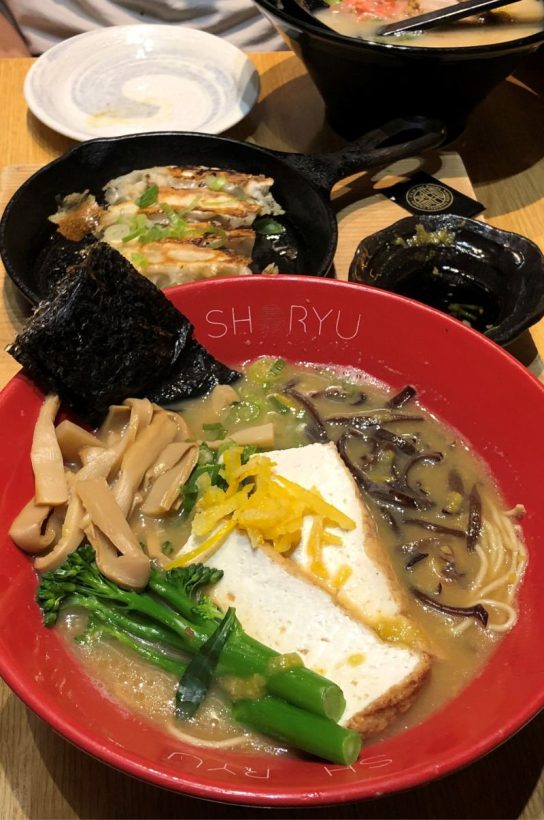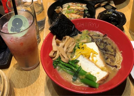 Yuzu white natural, tonyu soy milk, atsuage tofu, kikurage mushrooms, menma bamboo shoots, tender broccoli, nori seaweed and fresh yuzu zest at Shoryu Ramen, Soho, London