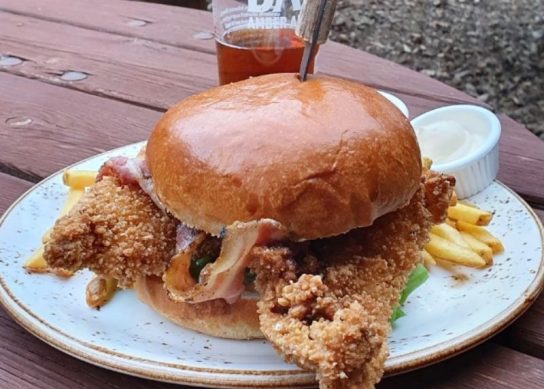 We only popped in for a drink, but then a burger caught our eye on its way to the next-door table. Fast forward a couple of hours and one drink had turned into a few, and we had devoured a rather tasty fried chicken burger. For some reason the dog wasn’t happy that our impromptu dinner had delayed his supper time. Can’t think why…