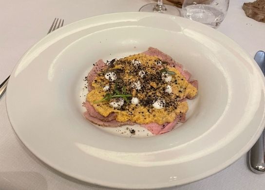 An Easter escape to Tuscany meant dinner at one of my favourite restaurants, Osteria Le Logge in Siena. After a walk through the Piazza del Campo and an Aperol spritz in the warm evening sun, it was nice to be back in the dining room of Le Logge where it was good to see a mix of well-heeled locals along with a smattering of tourists. The restaurant always does a take on vitello tonnato – each season tweaking it ever so slightly. Le Logge was originally run by Gianna Brunelli who sadly passed away but his wife Laura still plays host and they produce some stunning Tuscan wines – we opted for a bottle of their 2017 Rosso di Montalcino.