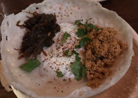 Making fresh egg hoppers for a dining room of 40+ is no mean feat but Rosh, chef and founder of Hop & Roll, is no stranger to hard work. Whilst working part-time as a lawyer and looking after her five-year-old twins she runs a street food business and supper club as part of a delicious campaign to bring authentic Sri Lankan food to Londoners. On the night, the slow cooked mutton curry was a triumph, though it was the mackerel, potato and egg curried roll with tamarind sauce that I’ll be seeking out again on the street food circuit.