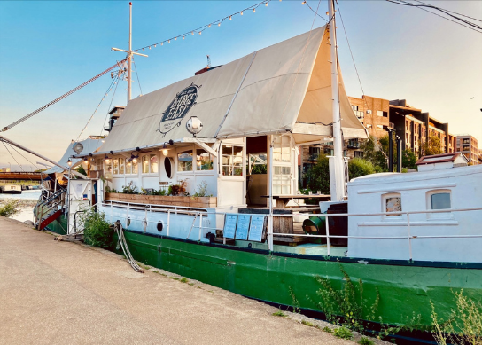 After raising more than triple their crowdfund target to survive lockdown 1.0 last year, Barge East used some of the excess funds to set up a large kitchen garden by the Hackney Wick towpath. They grow such a variety now that the guys from neighbouring SILO use it too! It’s also a lovely setting for al fresco drinks and more casual eats, whilst dining on the Dutch barge itself is more refined. Plates included a tomato and tofu cigar amuse bouche, set pea custard with rhubarb granita and a celery leaf parfait with lemon verbena, strawberry and walnuts.