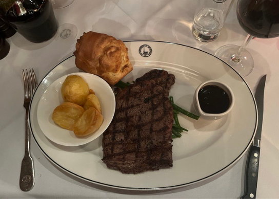 Everyone loves a Sunday roast but replace the roast beef with a 12oz prime ribeye steak and it’s a dEveryone loves a Sunday roast but replace the roast beef with a 12oz prime ribeye steak and it’s a different ball game. My Sunday lunch at Boisdale consisted of just this – a gigantic steak served with gravy, crunchy, goose fat roasted potatoes, green beans and arguably the best bit – a crisp Yorkshire pudding. It was enjoyed with alongside a punchy Malbec while listening to the live jazz and blues band playing in the corner and gentle chatter from the other diners. The elderly couple behind us sipping post-lunch martinis said they were Sunday regulars and have been coming for years. Serious goals.