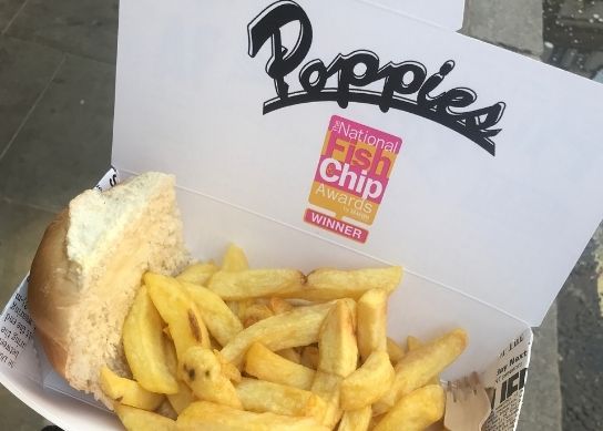 FindingFinding lunch for less than £3 in this city is no easy feat. Even meal deals are cruising close to £4 these days. This is where you turn to the humble chip butty. You can get them at most chippies – I got mine from Poppies in Soho and I mean, it really is cheap as chips. It’s only four ingredients – bread, butter, chips and salt – but like most things keeping it simple means it hits just right. In fact if you tried to pimp it up it wouldn’t work. You want cheap, white bread and fat, fluffy chips – end of. Of course you’re allowed a condiment of choice – mine is few heavy-handed shakes of malt vinegar over the hot chips but brown sauce, ketchup or mayo would also do.