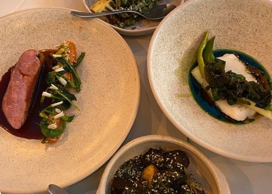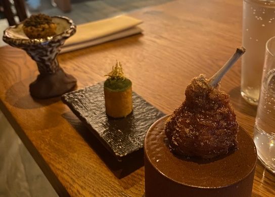 It’s rare to enter a restaurant and feel completely transported to another place. Akoko achieves this and more when you walk into the warm terracotta walled dining room. After a chat with owner Aji, a nine-course tasting menu awaited. I must admit, I hadn’t eaten much West African food before so was excited to try something new. Every single plate served brought something unique and interesting, full of bold, delicious flavours. While very hard to choose favourites, the Jollof rice and Suya (made with Hereford short rib) were highlights. The final course – a smooth, rich chocolate filling wrapped in a hard chocolate coating and layered on a crunchy base – might be the best chocolate dessert I’ve ever had.