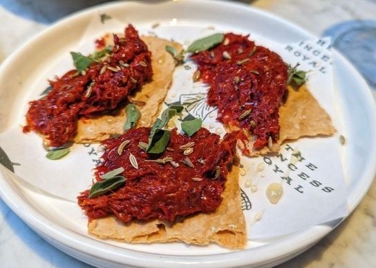 This week it was to the recently opened Princess Notting Hill from the Cubitt House team where Ben Tish is now chef director. Tucked off trendy Westbourne Grove, the site that was formerly Pomona’s has been beautiful refurbished by Georgie and Sam Pearman and it also has four bedrooms along with a courtyard that we can see being an ideal rosé spot. The Princess Royal reflects how modern pubs should now be – a welcoming spot for a pint for locals, as well as a cosy dining room that’s worth a journey across town with the brilliant Lorna MacPherson-Johnston bringing that sparkle of Corbin & King hospitality to the front-of-house.