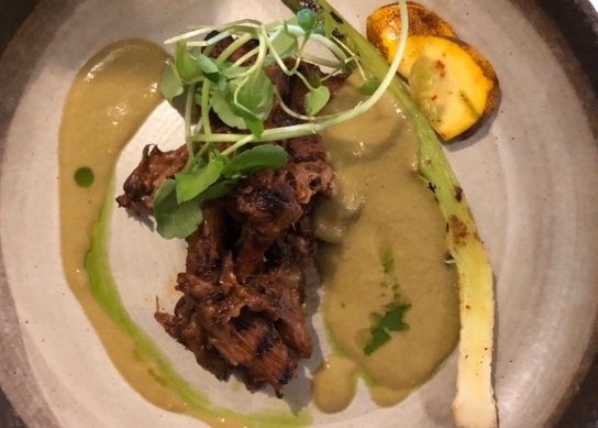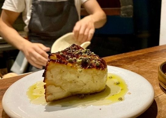 Tendril is the current residency at the Sun and 13 cantons on Great Pulteney Street in Soho and is from Head chef Rishim Sachdeva (previously of The Fat Duck, The Dairy and Chiltern Firehouse). The menu is ‘mostly vegan’ but Rishim loves cheese, which is apparent from the decadent Baked brie, honey, truffle mascarpone, on cranberry bread course we devoured. We loved the corn tostada with broad bean guac, and the chipotle grilled mushrooms with peanut glaze, and the chargrilled cauliflower with stem kimchi and curried raisins.
