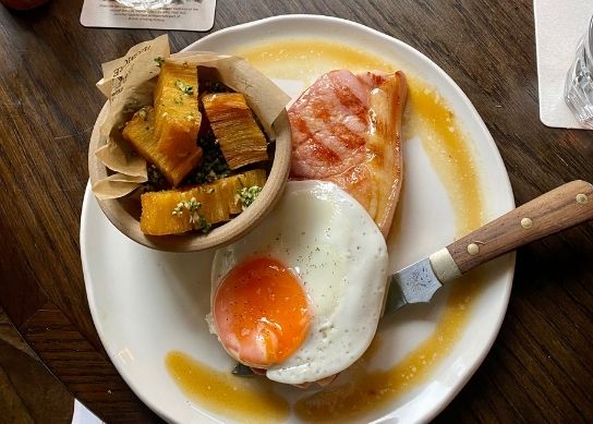 I think I’ve found a new favourite in central London. The Wigmore has a perfect balance of tradition and elegance, in a setting that feels pub-like, a really posh pub, but a pub nevertheless. The kitchen serves up comfort food with a refined edge. I start with the masala scotch eggs which are outstanding, as well as their beautifully buttery crab crumpets. I swiftly moved on to the best gammon, egg and chips I’ve ever had with the crispiest confit potatoes with garlic and parsley. Healthy Jan is going well clearly…