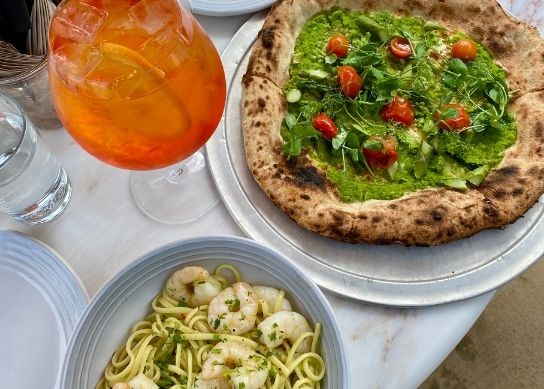 My mother, my dog Mabel, and myself visited Soho Farmhouse on a very warm Saturday afternoon to catch some rays, fill some tummies, and enjoy an Aperol spritz (or three). Hay Barn is the farm’s Californian-Italian food option with a large terrace at the back, perfect for sunshine. We chose to share a pasta and a pizza – sharing is caring. The prawn linguini was truly a triumph. The garlicky, zesty sauce that coated the pasta and the prawns, balanced and luscious. The pizza had a base of asparagus, garden peas and mint – a really refreshing, summery take on the Italian classic. Mabel enjoyed Lily’s Kitchen treats.