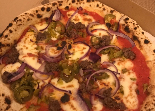 One of my last meals before COVID fully hit was squashed in at the bar at The Compton Arms hungrily working on the legendary Four Legs cheeseburger and their ridiculously good fried potatoes. There were proper pints to wash it down with and the buzz of the Liverpool v Atletico Madrid match on in the background. I’ve missed Four Legs a lot so wanted to investigate their cheeseburger pizza in collaboration with Yard Sale. It’s actually less OTT than it sounds – the crumbled burger patty, pickles, jalapeños and all the cheese make a lot of delicious sense.