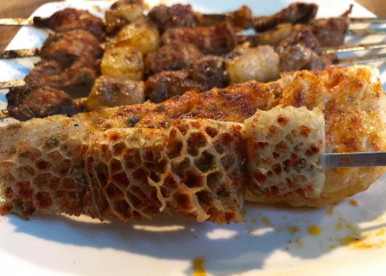 Tripe, fish, lamb and kidney skewers, Silk Road